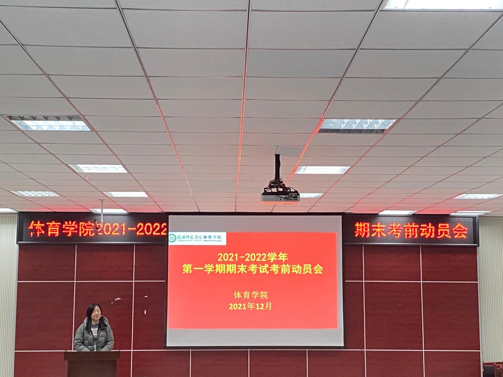 为推动学生积极备考、诚信考试,加强学生考风考纪教育,规范考试秩序,12月13日晚,beat365英国官网网站2020级在体育馆多媒体教室召开2021—2022学年第一学期期末考试考前动员会。beat365英国官网网站副院长张娟、2020级辅导员龙慧杰及2020级全体学生参加了本次会议。