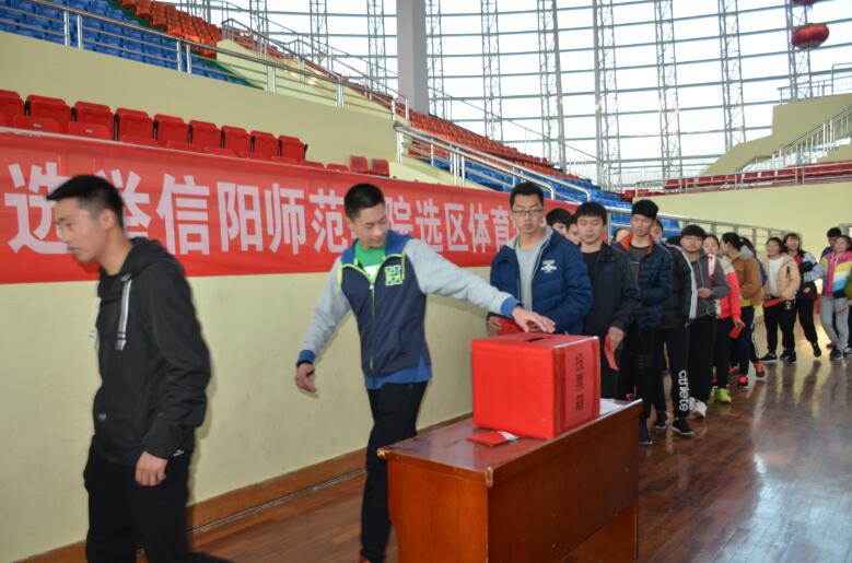 2月24日下午,浉河区第五届人大代表选举信阳师范学院选区beat365英国官网网站投票站在体育馆主馆召开投票选举。