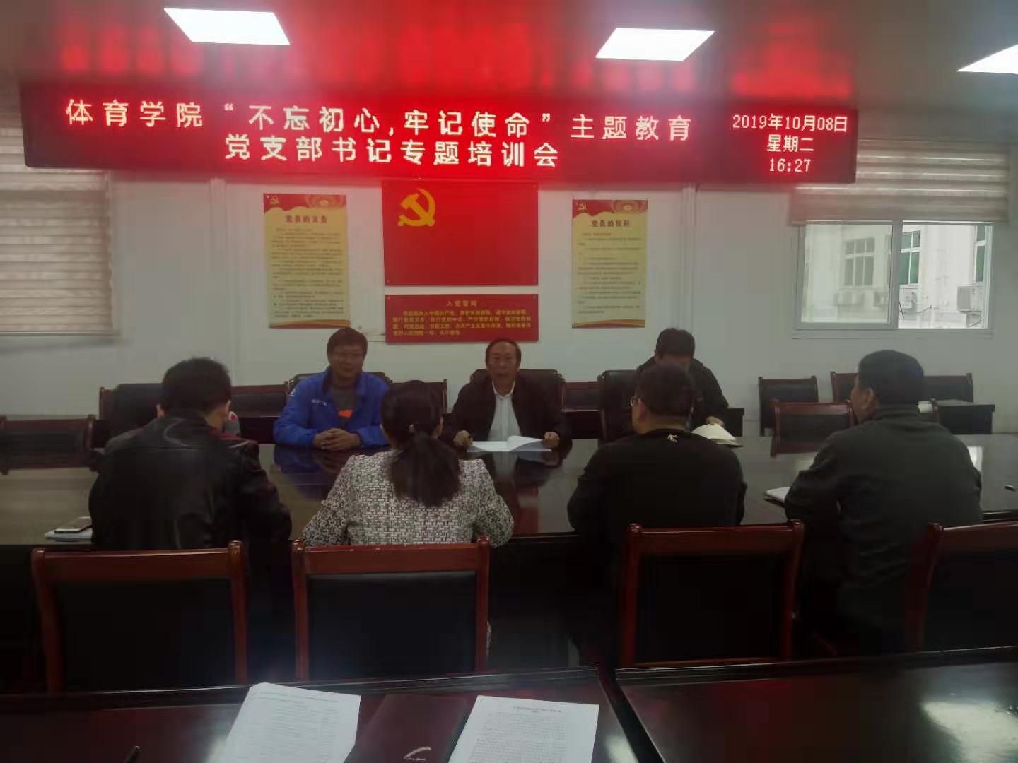 2019年10月8日下午4:30,beat365英国官网网站“不忘初心、牢记使命”主题教育党支部书记专题培训会在三楼会议室召开,beat365英国官网网站党委书记陈青、副院长牛林杰、党委委员副处级辅导员柴九昌以及教工和学生党支部书记参加了培训会。