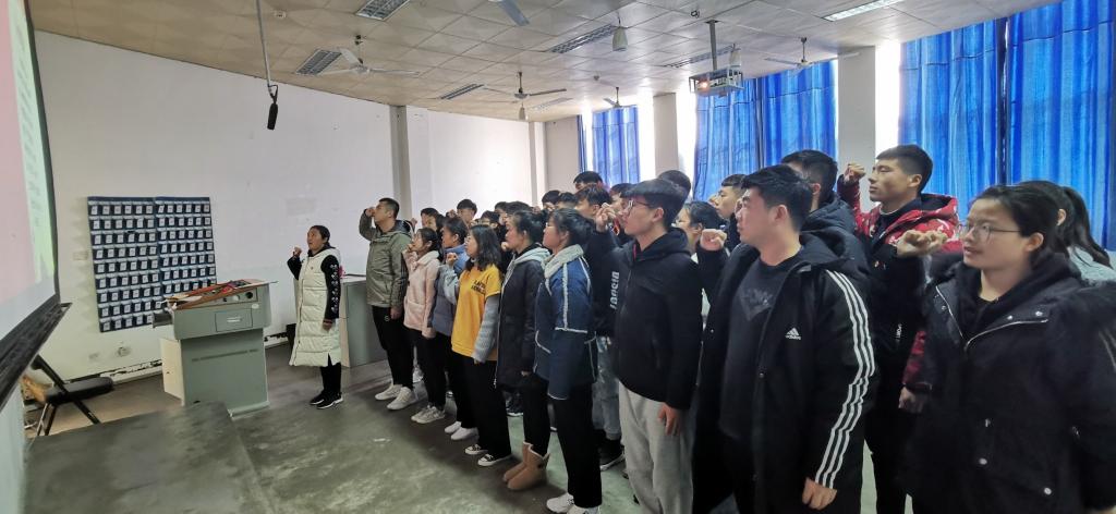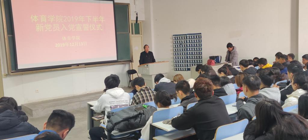 2019年12月13日中午,beat365英国官网网站党委在人文楼110教室举行2019年下半年新党员入党宣誓仪式。beat365英国官网网站党委书记陈青,副处级辅导员、学一支部书记柴九昌,学二支部书记赵倩倩,学三支部书记程俊辉、教工党员代表陈广辉及beat365英国官网网站全体学生党员和部分积极分子代表参加了仪式。仪式由柴九昌主持。