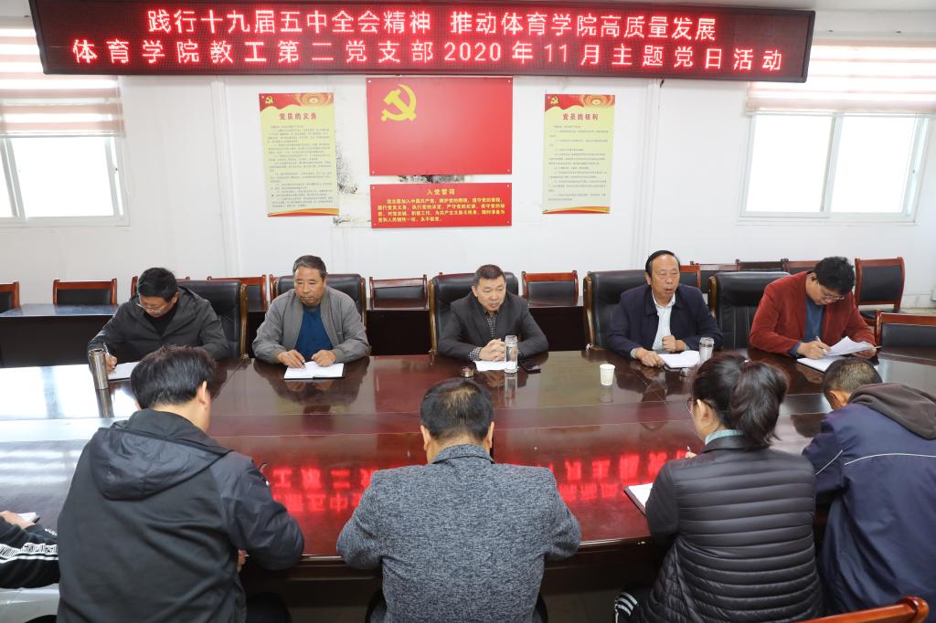 11月6日,党委副书记、工会主席王文臣参加指导beat365英国官网网站教工第二党支部“践行十九届五中全会精神 推动beat365英国官网网站高质量发展”主题党日活动。beat365英国官网网站党委书记陈青,教工第二党支部书记刘波及支部党员参加会议。