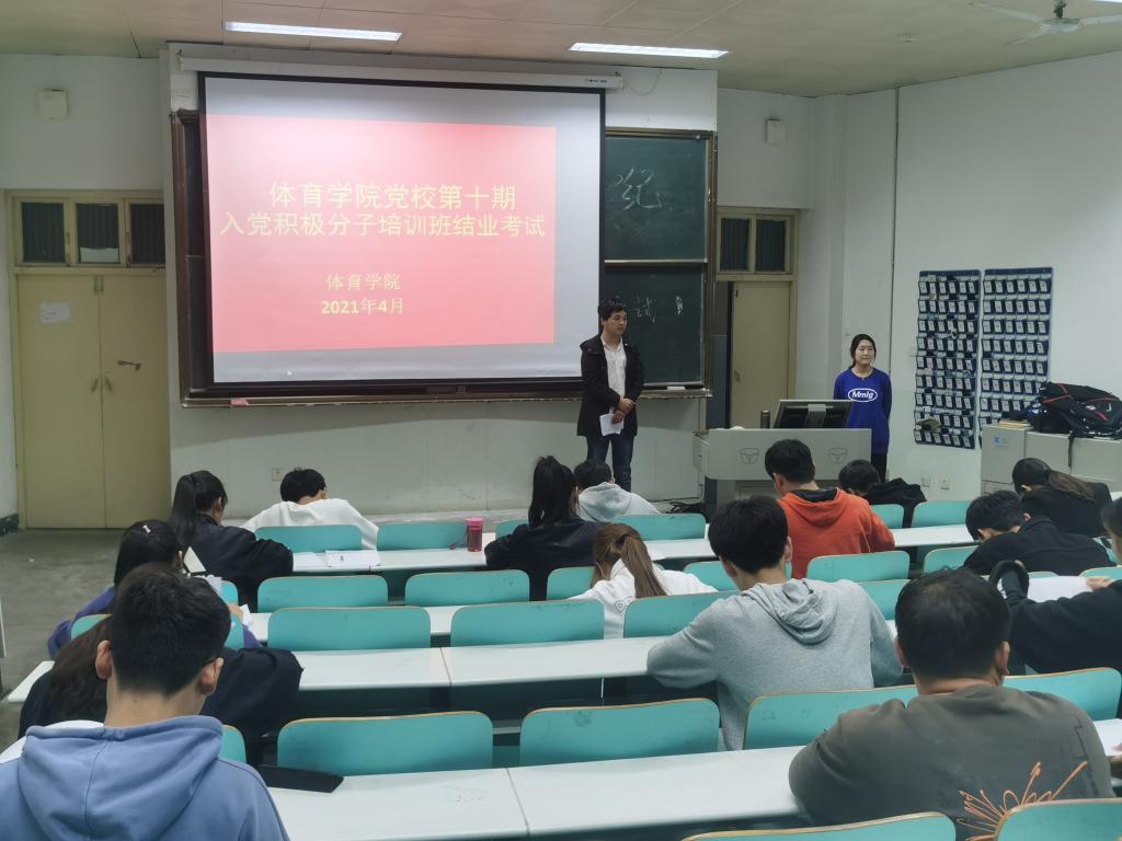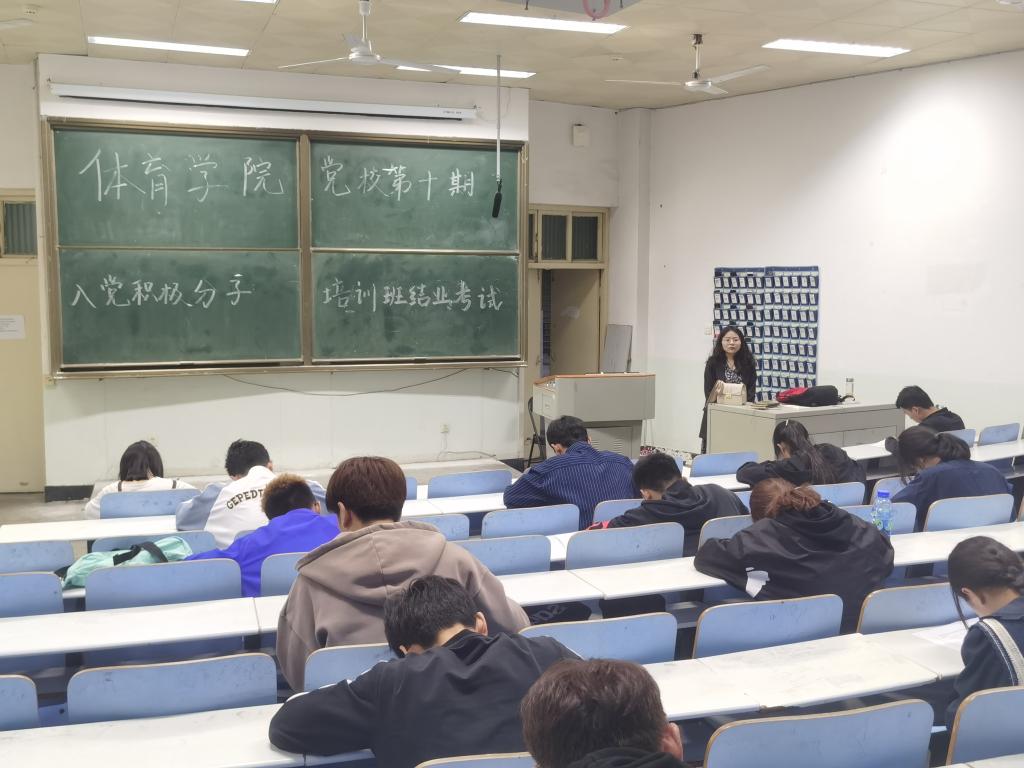 为检验beat365官网党校第十期入党积极分子近阶段培训后的成果、巩固已经学过的知识,beat365官网于2021年4月16日晚在人文楼109、110教室组织进行了结业考试。本期培训班60余名积极分子参加考试,第10期党员入党积极分子培训班班主任程俊辉、学生支部书记赖梦玥、龙慧杰、学生会部分成员担任监考老师。