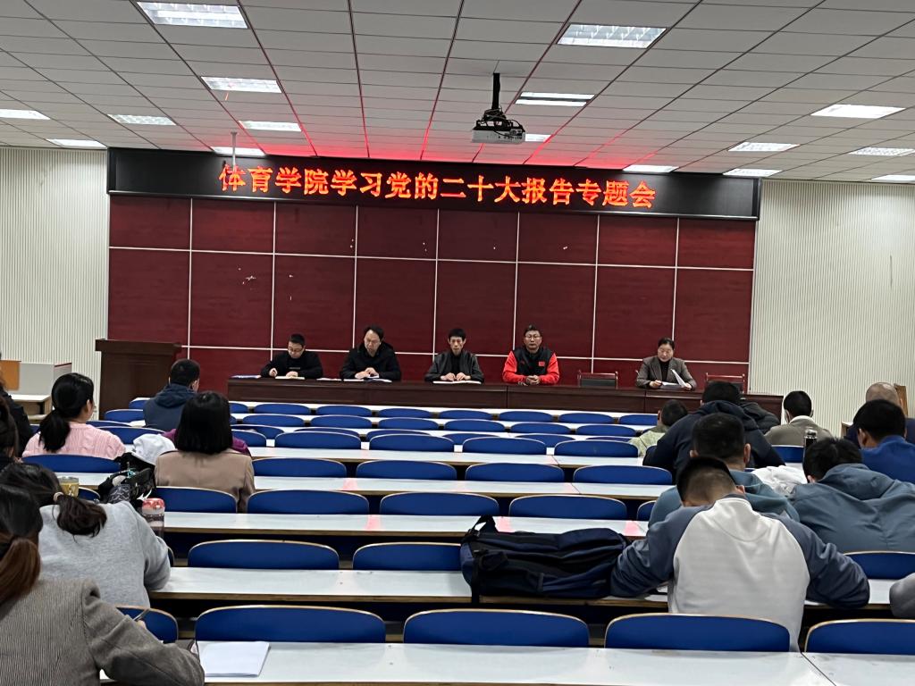 11月8日,beat365英国官网网站在体育馆多媒体教室举行党的二十大精神专题学习会,beat365英国官网网站全体教职工参会,会上副院长张娟为全体教师作作党的二十大精神学习辅导,会议由院长余道明主持。