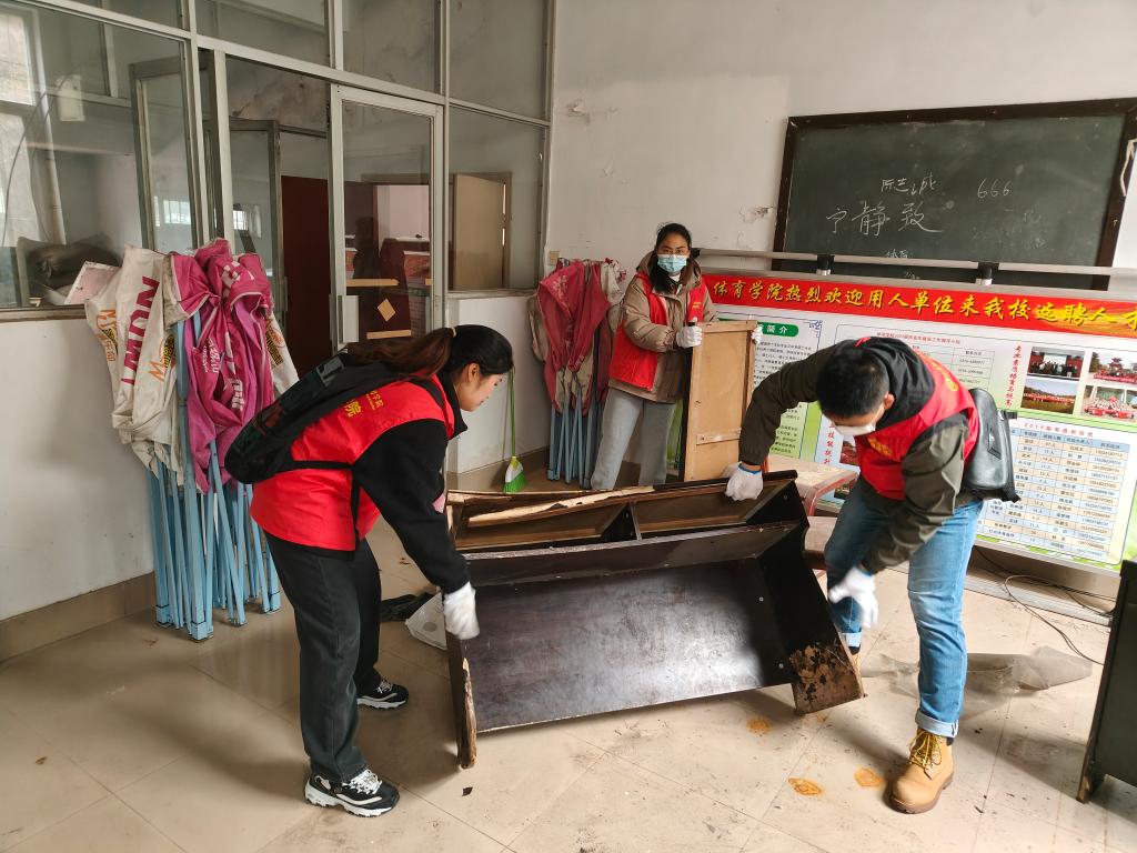 本次活动主要内容是beat365英国官网网站的固定教室和仓库等场所进行卫生清理工作。本次志愿服务活动将 17 位成员分为三个小组。第一组四位同学负责清理打扫beat365英国官网网站三个固定教室的卫生,负责把桌面上的笔迹进行擦除以及垃圾的清洁。第二组的四位成员负责体育馆一楼的多媒体教室和一楼的公共走廊。主要负责课桌和讲台的擦拭。第三组安排了九位成员负责beat365英国官网网站西操场所属的beat365英国官网网站仓库整扫。