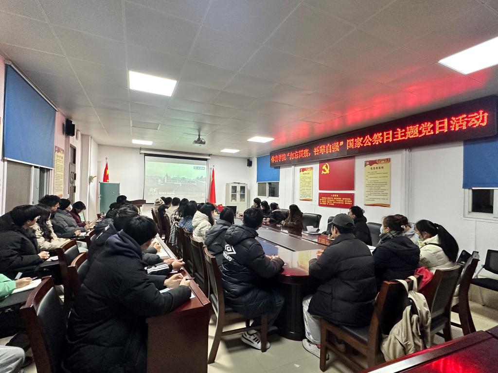 2023年12月13日是第10个南京大屠杀死难者国家公祭日。12月13日,beat365英国官网网站举行“勿忘国殇,吾辈自强”国家公祭日主题党日活动,组织全体学生党员观看新华网和央视新闻网国家公祭日悼念活动线上直播活动。