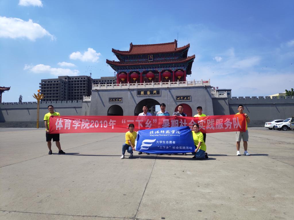 7月7日上午,beat365英国官网网站“三下乡”社会实践志愿二队在beat365英国官网网站党委书记陈青、副院长牛林杰、副处级辅导员柴九昌、党委委员球类教研室主任刘波、分团委书记鲁枝鑫等多位老师的带领下,前往漯河市南街村进行实地调研。到达南街村后,志愿队先是参观了朝阳门的宏伟壮阔。而后在南街村东方红广场举行献花仪式,重温入党誓词,以向革命先驱致敬!