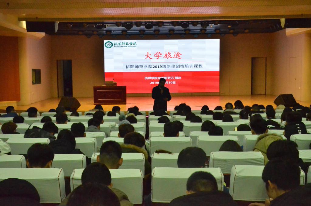 11月30日上午,传媒学院党委副书记胡波应邀为beat365英国官网网站、旅游学院、教师教育学院2019级新生团员授课,beat365英国官网网站副处级辅导员柴九昌、团委老师赵倩倩莅临现场与三个学院2019级新生团员共同参加此次活动。此次团课由柴九昌主持。