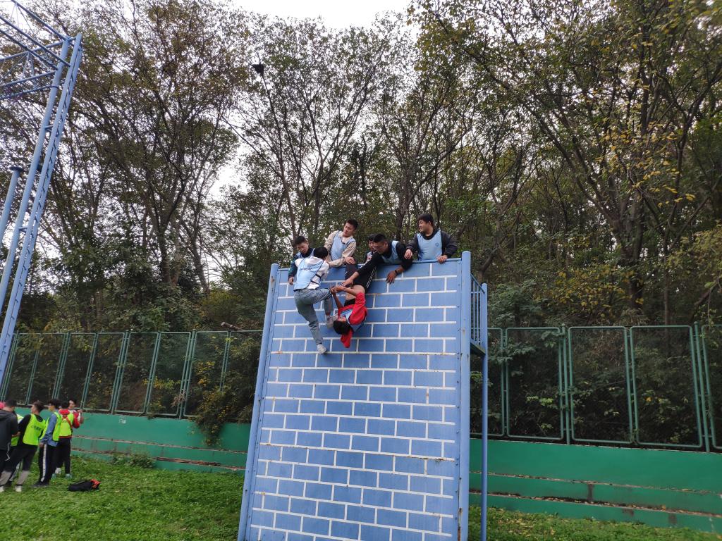 本次共开展了四个活动。一是高空断桥,考验每个参与人员的勇气;二是毕业墙,组员通过各种方法翻越高墙,考验全队协作能力;三是携手走钢丝,这个游戏需两人相互手搭肩发力走钢丝;四是穿越电网,组内配合将其组员在不接触钢圈情况下运送至另一侧。在所有小组完成活动后,所有成员围坐一圈一起交流自己的体会心得,至此,心里拓展素质活动完美落幕。