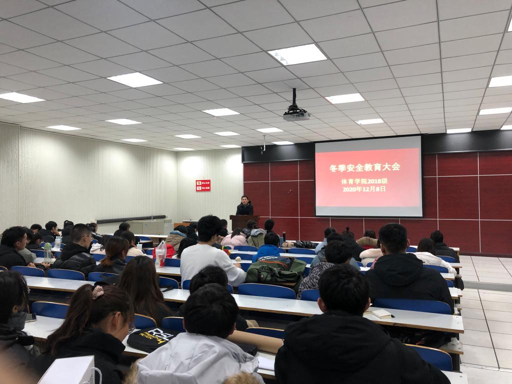 2020年12月8月晚,beat365英国官网网站2018级于体育馆多媒体教室召开了冬季安全教育大会,2018级全体学生参会,本次大会由18级辅导员程俊辉主讲。