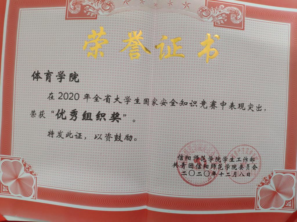 为深入贯彻习近平总书记关于总体国家安全观的重要论述,全面落实中央、省委关于加强国家安全教育有关通知精神和“将国家安全教育纳入国民教育体系”的法定要求,提高青年大学生的国家安全意识,我院严格落实校相关文件要求于10月9日至11月15日期间举办了大学生国家安全知识竞赛活动。竞赛活动得到了beat365官网全体师生的高度重视和积极参与,各年级辅导员、班委广泛宣传、精心组织,参赛选手扎实准备、认真答题,在全院范围内形成了良好的学习氛围。,beat365官网获得优秀组织单位,程俊辉为优秀指导教师。