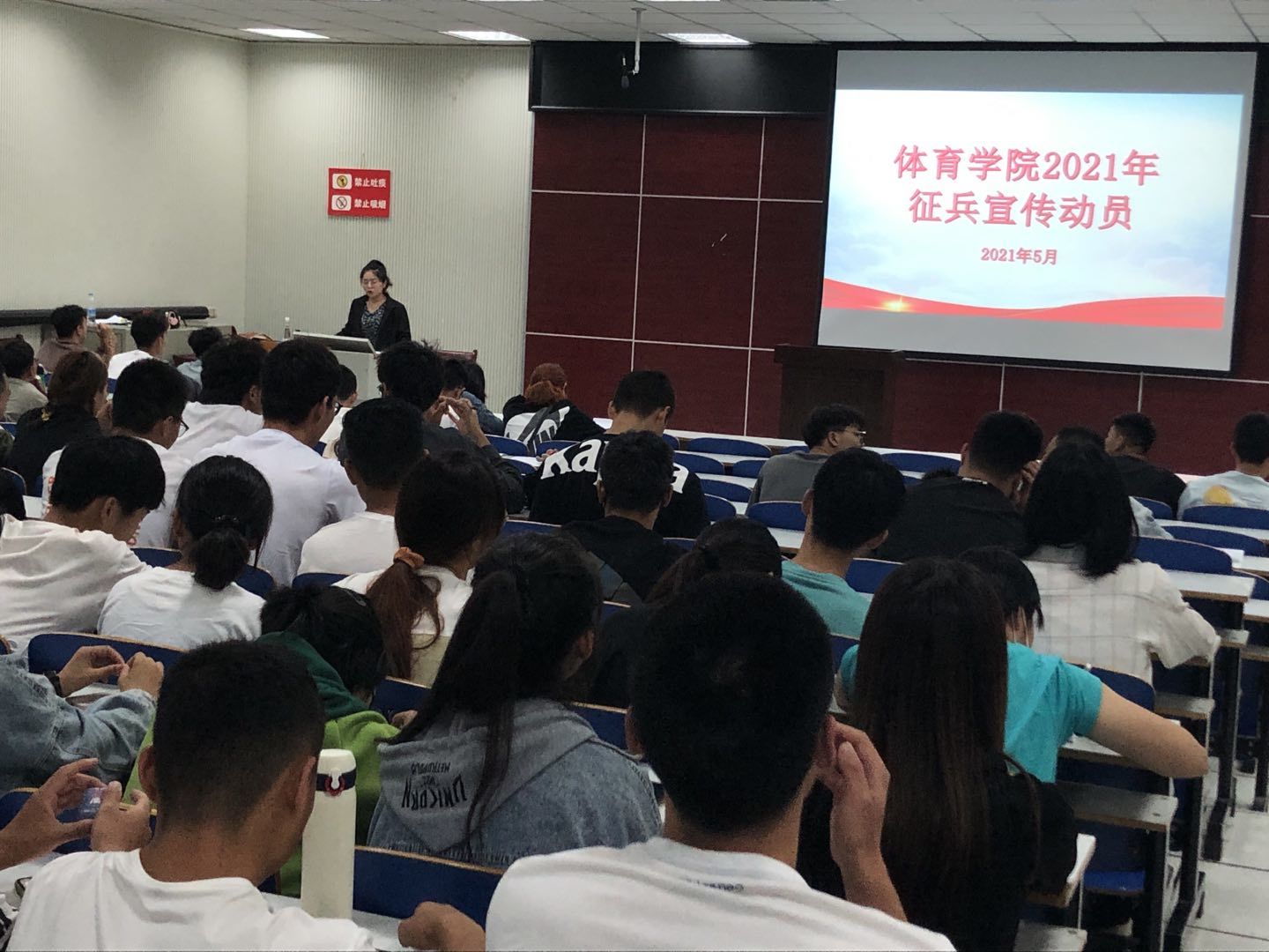 为了促进国防现代化,鼓励学生积极参与应征入伍,提高兵源征集质量,推进国防和军队现代化建设,5月16日,beat365英国官网网站2019级召开大学生征兵宣传动员会,2019级辅导员赖梦玥主持会议,beat365英国官网网站武装干事龙慧杰出席会议,2019级全体学生参与会议。