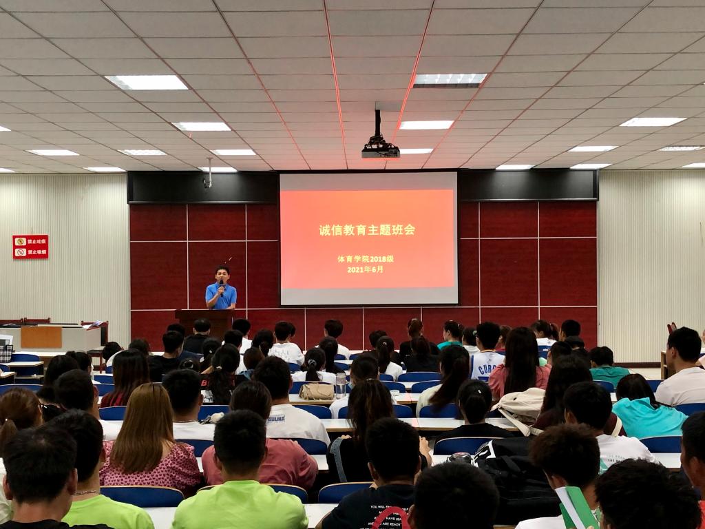 2021年6月21日晚,beat365英国官网网站2018级全体学生于体育馆多媒体教室开展了“诚信教育”主题班会,班会由2018级辅导员程俊辉主持,旨在进一步培养大学生的诚信品质,提高诚信意识,全面提高大学生的思想道德素质,引导学生树立诚信理念,践行社会主义核心价值观,促使学生养成“诚信待人、诚信处事、诚信学习、诚信立身、诚信考试”的良好习惯,大力弘扬诚信文化,切实提升学生的诚信品质、自律意识和社会责任感。