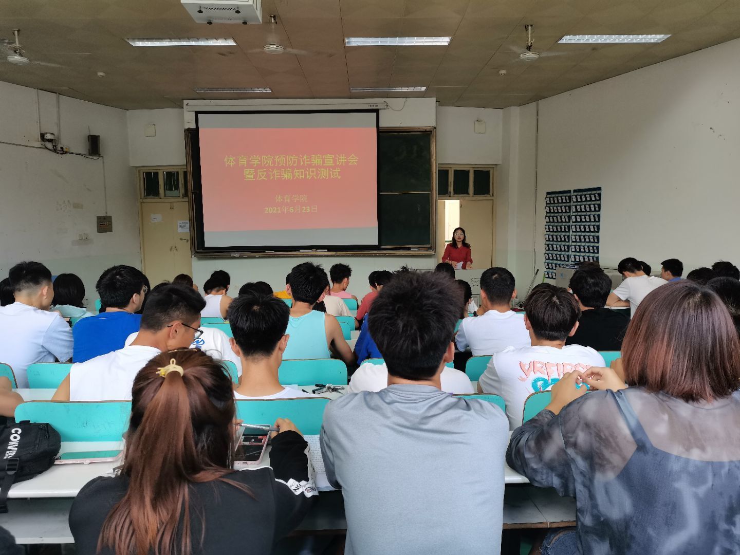 为增强学生的反诈骗意识,减少电信诈骗发生频率,保护学生的合法权益不受侵害,营造学校良好的安全文化氛围。beat365英国官网网站于6月23日上午11点在人文楼109教室召开“预防诈骗宣讲会暨诈骗知识测试”大会,2019级全体同学参加,本次宣讲会由2019级辅导员赖梦玥主持。