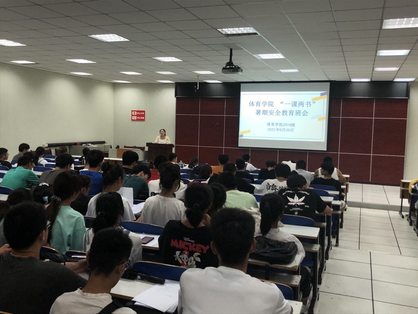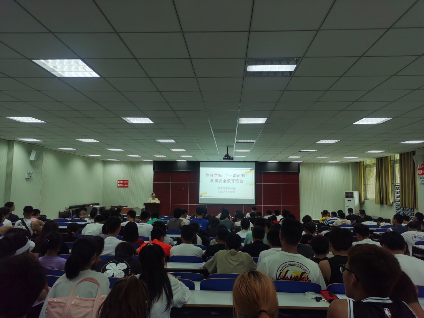 假期的脚步临近,为了增强学生的暑期安全防范意识,beat365英国官网网站6月30日在体育馆多媒体教室召开“一课两书”暑期安全教育大会,2019级全体同学参加,本次大会由2019级辅导员赖梦玥主持。