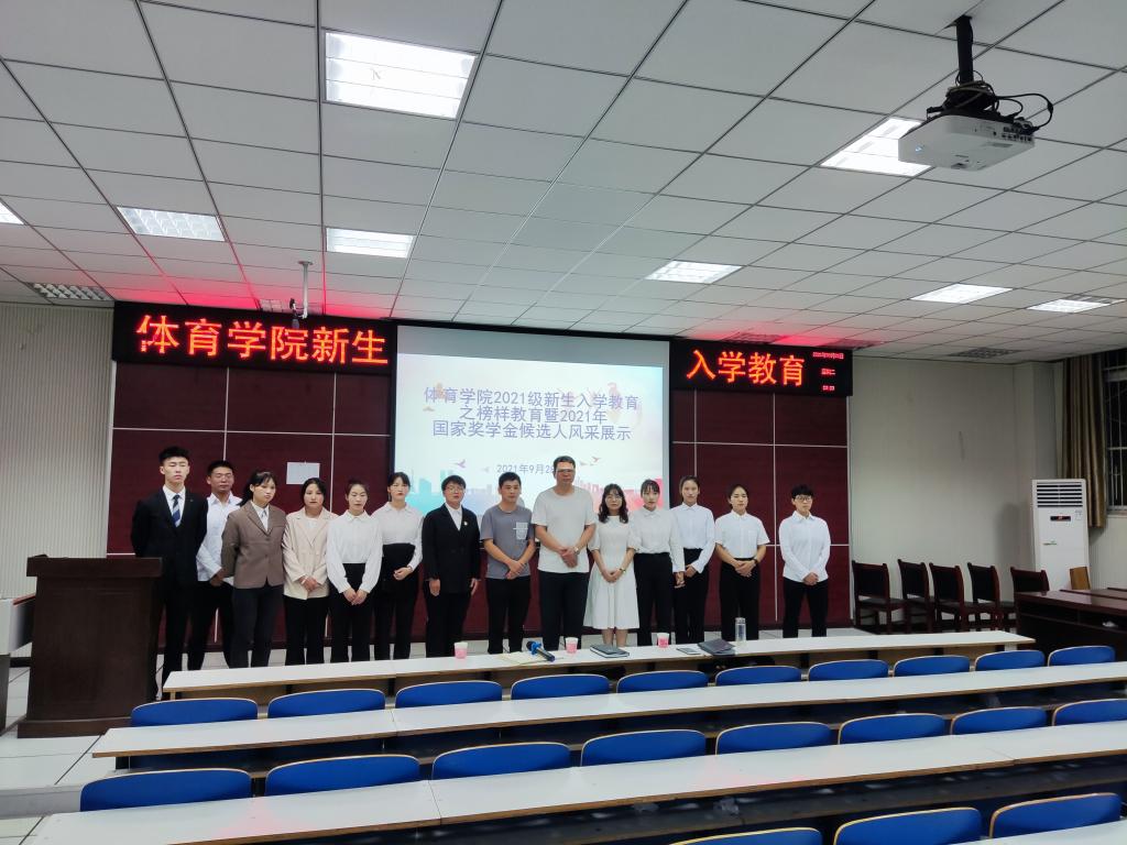 为公开、公平、公正地做好2021年国家奖学金评选工作,进一步推进beat365官网学风建设同时也为了能更好的激励beat365官网新生学习热情,beat365英国官网网站于9月28日晚七点在多媒体教室举行2021级新生入学教育之榜样教育暨2021年国家奖学金候选人风采展示。beat365英国官网网站党委副书记柴九昌、辅导员程俊辉、赖梦玥、9位候选人及2021级全部学生参会。