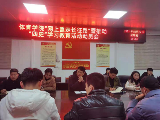 3月12日,beat365官网在二楼会议室召开“网上重长征路”暨推动“四史”学习教育动员大会,副处级辅导员柴九昌、辅导员程俊辉、赖梦玥、龙慧杰、各班班委及学生会部分成员参与,会议由柴九昌主持。