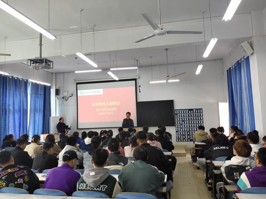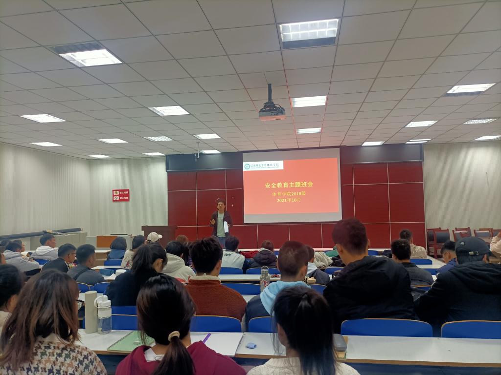 为提高同学们的安全防范意识,增强同学们的安全防范能力,全面普及校园安全常识,创造和谐安全的校园环境,beat365英国官网网站2018级于10月27日上午在多媒体教室、教育九402分别开展了安全教育主题班会,2018级全体学生参会,此次班会由2018级辅导员程俊辉主持。