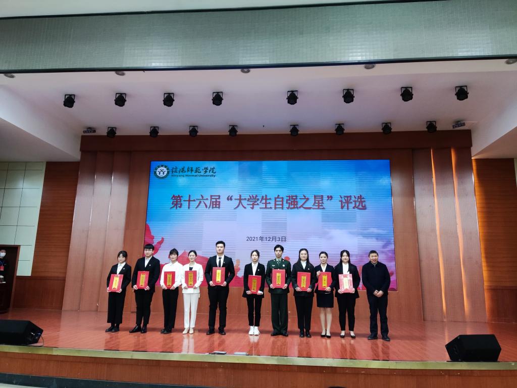 12月3日,由校团委举办的第十六届“大学生自强之星”评选在逸夫楼报告厅举行。通过近一个月的个人申请、学院推荐、线上线下展示、现场评审、后期公示等环节,,经过激烈的角逐beat365官网2019级体育教育二班薛杨杨获得第十六届“大学生自强之星”。