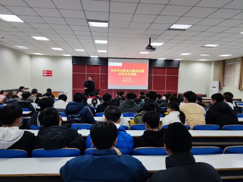 为增强同学们的安全防范意识,提高同学们的安全防范能力。12月20日上午,beat365英国官网网站在体育馆多媒体教室举行应急安全教育主题班会暨应急安全演练。beat365英国官网网站党委副书记柴九昌、辅导员程俊辉及2021级全体学生参与本次活动。