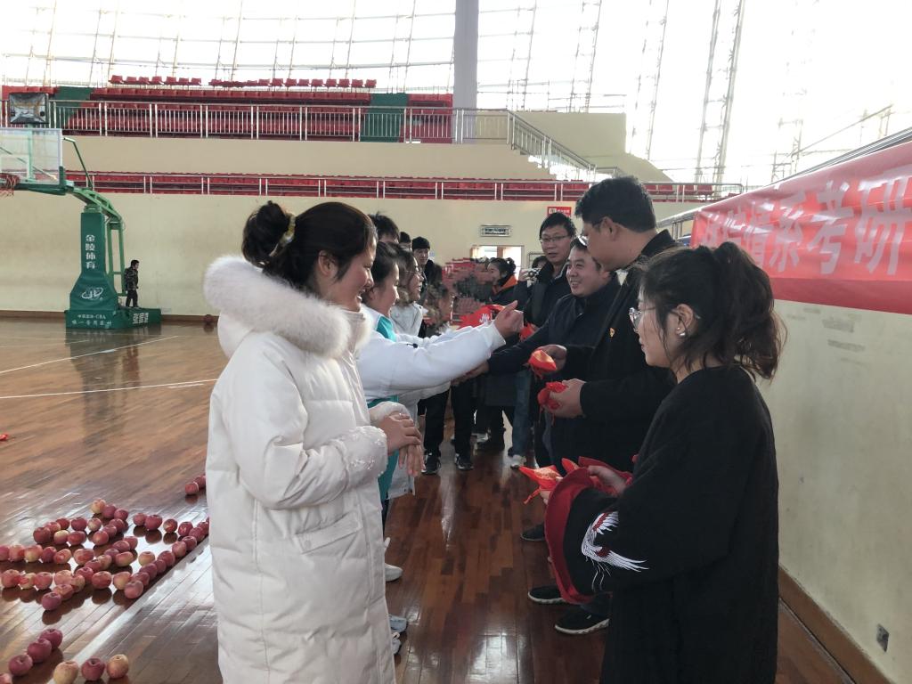 随后与会领导老师为考研学生发放了“顺利通过果“、”金榜题名袋“、”一战成硕链“等物品。