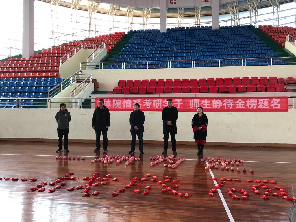 为鼓舞考研学生信心,缓解考前压力,12月17日,beat365英国官网网站在体育馆二楼篮球馆组织开展了“体院情系考研学子,师生静待金榜题名”主题慰问活动。beat365英国官网网站党委书记张晓峰、副书记柴九昌、副院长牛林杰、全体辅导员以及2018级全体学生参与本次活动,活动由毕业班辅导员程俊辉主持。