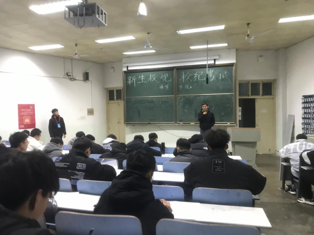 本次考试内容以信阳师范学院学生手册相关内容为主,通过填空、简答、论述等题型,考察学生对我校校规校纪的认识与了解。考试的内容广泛,涵盖了思想政治教育、奖励与资助、违纪处分、宿舍管理等知识。考场中同学们认真作答,监考人员认真负责。