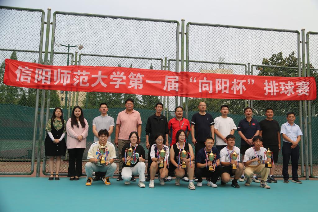 激情澎“排”,追“球”梦想。6月3日,beat365英国官网网站第一届“向阳杯”排球赛师生友谊赛暨颁奖典礼在排球场举行。beat365英国官网网站院长余道明,教职工排球协会秘书长、资产管理处副处长冯铁臣,beat365英国官网网站党委副书记柴九昌,传媒学院团委书记张一鸣、建筑与土木工程学院团委书记冯舒心、法学与社会学学院团委书记费泽丹、美术与设计学院团委老师杨琳、 排球协会指导老师郭旭峰、beat365英国官网网站全体辅导员及各学院代表队到场观赛。