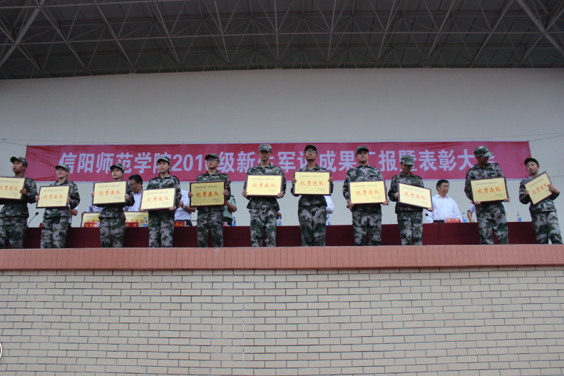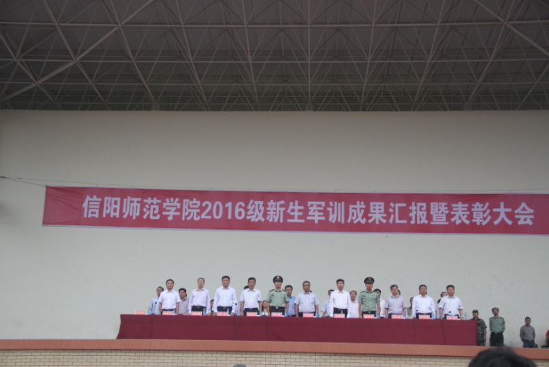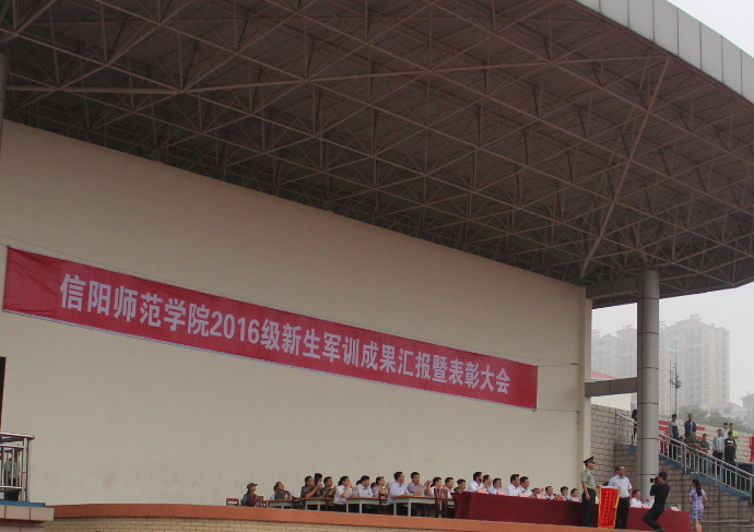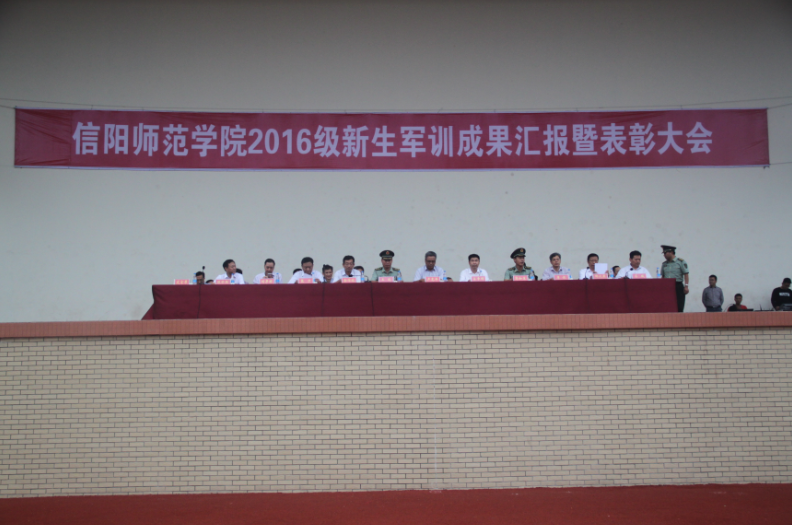 9月26日下午4时,“信阳师范学院2016级新生军训成果汇报暨表彰大会”在我校西田径场盛大召开。校党委书记卢克平、校长宋争辉、校党委副书记余作斌,副校长李俊、副校长张力、副校长郜火星、副校长刘彦明、副校长齐城、校长助理陈登报及各职能部门和各学院负责人参加大会。参训部队首长王瑞、郭如生应邀出席大会。大会由副校长齐城主持。经过两周的艰苦训练,6000余名2016级新生集中展示了军训成果,接受领导和师生的检阅。校党委书记卢克平宣布大会开始后,全场响起了令人振奋的国歌声。2016级新生进行了军训队列展示,同学们迈着整齐矫健的步伐,喊着响亮的口号,斗志昂扬地依次从主席台前走过。随后,部分营连进行了军体拳、刺杀等特色科目汇报,同学们精彩的表演,赢得了广大师生经久不息的掌声和连连不断的喝彩。校党委书记卢克平代表学校向承训部队赠送锦旗。副校长郜火星宣读《关于表彰信阳师院2016级学生军训先进单位和先进个人的决定》,校领导及来宾为获奖代表颁奖。beat365英国官网网站在此次军训中依旧表现出色,分获歌咏比赛、军体拳、队列等多项一等奖,获得“优秀连队”荣誉称号。在军训过程中,beat365英国官网网站党委副书记严彬及班主任老师柴九昌、鲁枝鑫、陈卓,高度重视、认真负责,始终坚守在军训场地。尤其是党委副书记严彬,积极与参训教官沟通、交流,提供思路与想法,为beat365官网获得优异成绩,创造了充分条件。在军训中,通过教官的言传身教,了解和掌握了基本的军事技能,养成了文明的举止、严格的纪律、优良的作风,增强了集体荣誉感和责任担当意识。今年军训领导重视、科学施训、重视育人。希望同学们把在军训中形成的好传统、好品格、好思想、好作风,贯穿到今后的学习和生活中,志存高远,勤学苦练,立志成才。