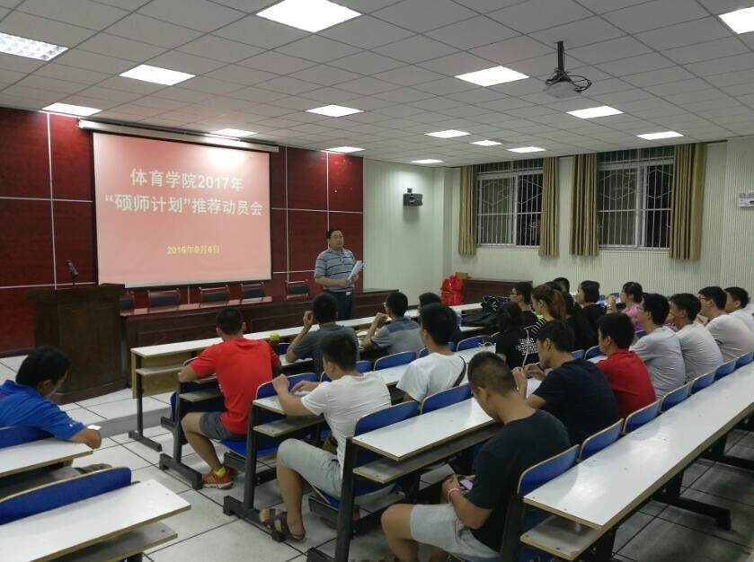 九月六日晚,beat365英国官网网站在体育馆多媒体教室召开“beat365英国官网网站2017年‘硕师计划’推荐动员会”。会议由beat365英国官网网站党委副书记严彬主持,班主任老师张道琪、杨明勇、鲁枝鑫、陈卓,参加此次动员会。