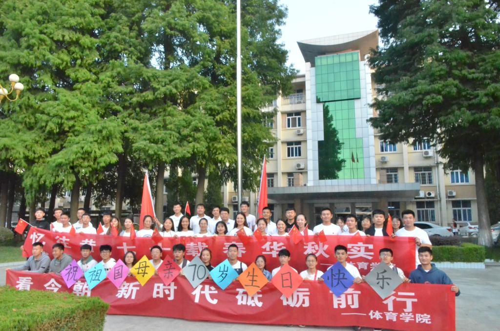 五千年漫漫征程,一路风雨一路行。我们用诗朗诵来庆祝祖国的七十华诞,我们用歌曲来唱响我们对祖国的热爱,用誓言来对祖国做出保证。高高飘扬的五星红旗,凝聚着亿万中国人民的归属感和荣誉感。作为青年大学生的我们守护国旗义不容辞。“点亮中国,我们都是旗手”为祖国呐喊助威。