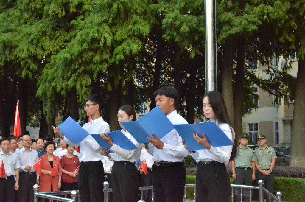 为庆祝祖国70周年华诞,也为进一步加强大学生爱国主义教育和国防教育。beat365官网于2019年10月1日日早6点半在行政楼前举行“致敬国旗,贺岁祖国”升旗仪式。校党委副书记郜火星,党委宣传部、党委学工部、校团委等单位相关负责同志参加。