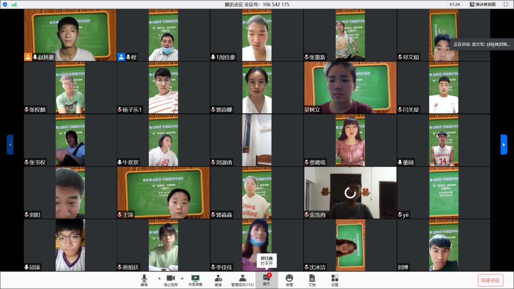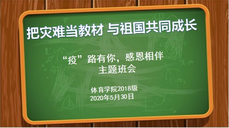 为了进一步激发beat365官网学生的责任担当,引导广大学生把灾难当教材、把困难当磨砺,做到在灾难面前与国家共患难、与人民共进步,共同完成这场生命教育、信念教育、科学教育与道德教育,大力加强爱国主义教育,努力把疫情危机化为教育契机,beat365官网2018级于30日晚7点开展线上“把灾难当教材 与祖国共同成长”主题班会,2018级辅导员程俊辉和全体同学一同参加此次主题班会。