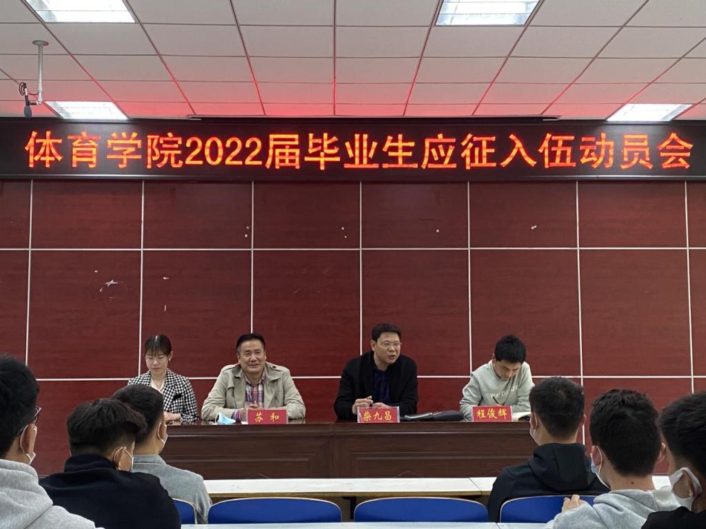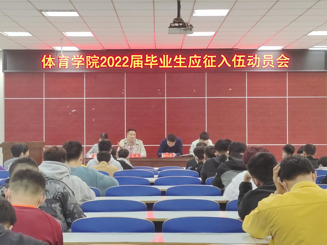 3月11日下午beat365英国官网网站在体育馆多媒体教室召开“beat365英国官网网站2022届毕业生应征入伍动员大会”。校武装部副部长苏和,beat365英国官网网站党委副书记柴九昌,beat365英国官网网站全体辅导员、毕业生参会。会议由唐娟主持。