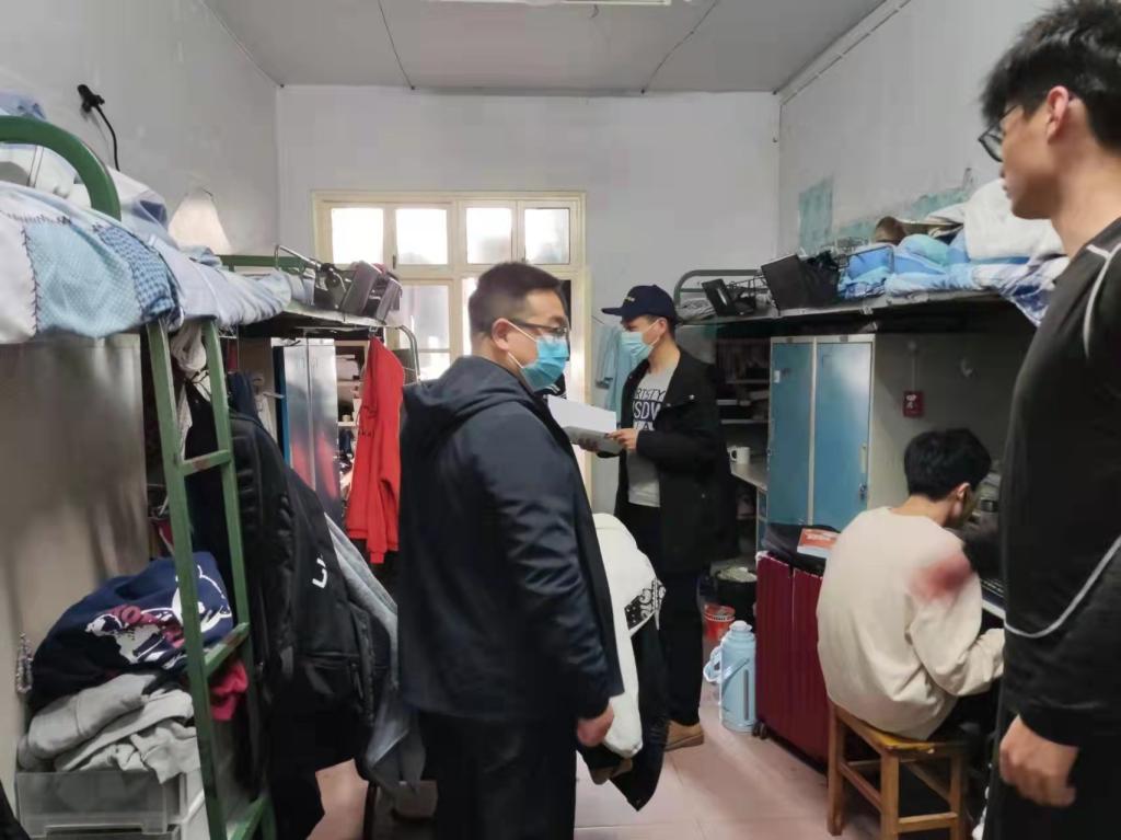 为了解清明节假期在校学生情况,3日、4日,beat365官网副院长杨晶伟、张翔、党委副书记柴九昌带领全体辅导员逐一走访学生宿舍。