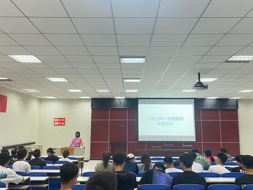 根据《信阳师范学院一流本科专业点培育与建设方案》的指导思想,主动适应国家战略发展新需求和学校人才培养发展新趋势,beat365英国官网网站于3月8日成立2022年度“文体计划培修班”,充分发挥新型体育专业的示范领跑作用。3月10日,21级在体育馆多媒体教室召开文体计划培修班开班仪式,会议由辅导员唐娟主持。