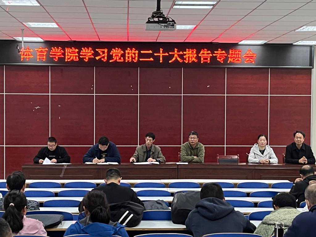 11月1日,beat365英国官网网站在体育馆多媒体教室举行党的二十大精神专题学习会,beat365英国官网网站全体教职工参加会议,会上,副院长杨晶伟为全体教师作党的二十大精神学习辅导,会议由党委副书记柴九昌主持。