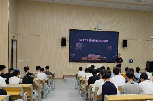 2024515日,丰士凯老师在淮河校区综合实验楼101教室为2021级和2022级篮球专选班同学们带来了一场“篮球进攻技术分析及训练”专题讲座。