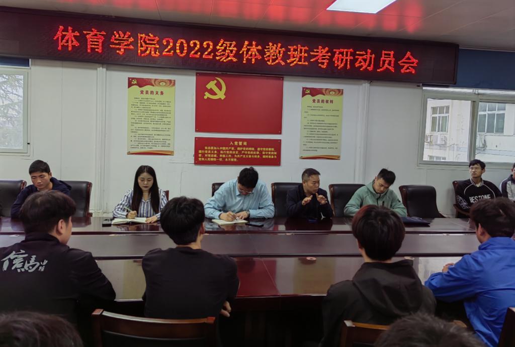 为激发学生的考研热情,明确考研目标,10月17日上午,beat365英国官网网站举行2025年考研动员会,2022级体教班全体同学参加,动员会由党委副书记柴九昌主持。