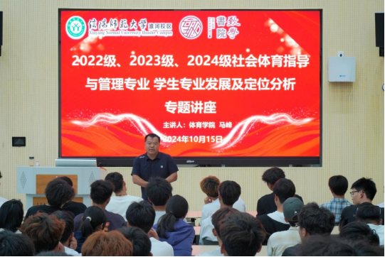 为明晰专业目标、深入剖析就业前景、帮助学生做好专业定位,按照beat365英国官网网站和致学书院工作安排,10月15日,在文综楼207教室召开社会体育指导与管理专业学生专业发展及定位分析专题讲座。致学书院直属党支部书记徐忠,beat365英国官网网站专任课教师马峰,致学书院专职辅导员刘贝贝,2022级、2023级、2024级全体社会体育指导与管理专业学生参与此次讲座。