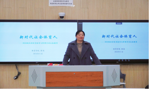 11月27日下午,beat365英国官网网站副院长张娟在息县为2024级社会体育指导与管理专业的学生作了题为“新时代社会体育人”的专题讲座。