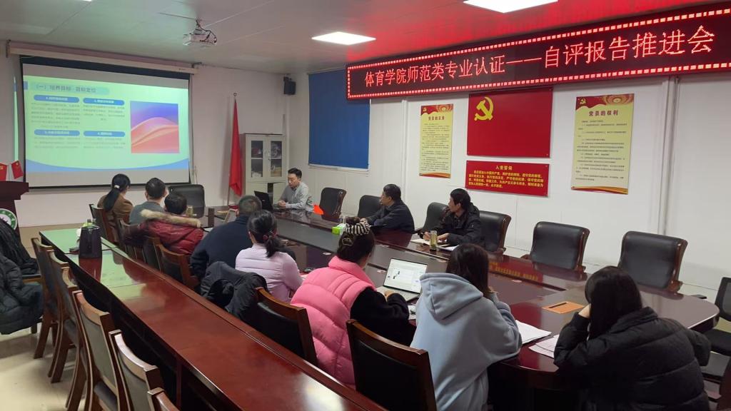 为全面推动师范类专业认证工作的深入开展。3月2日,在beat365英国官网网站三楼会议室召开了体育教育专业认证自评报告推进会。会上,余道明院长提出,师范类专业认证是衡量学院教育教学质量和办学水平的重要指标,对于提升学院的社会声誉和竞争力具有重要意义。张娟副院长就存在的问题和困难进行了深入剖析。会议最后,张晓峰书记要求各部门要严格按照时间节点推进工作,确保自评报告的按时提交。