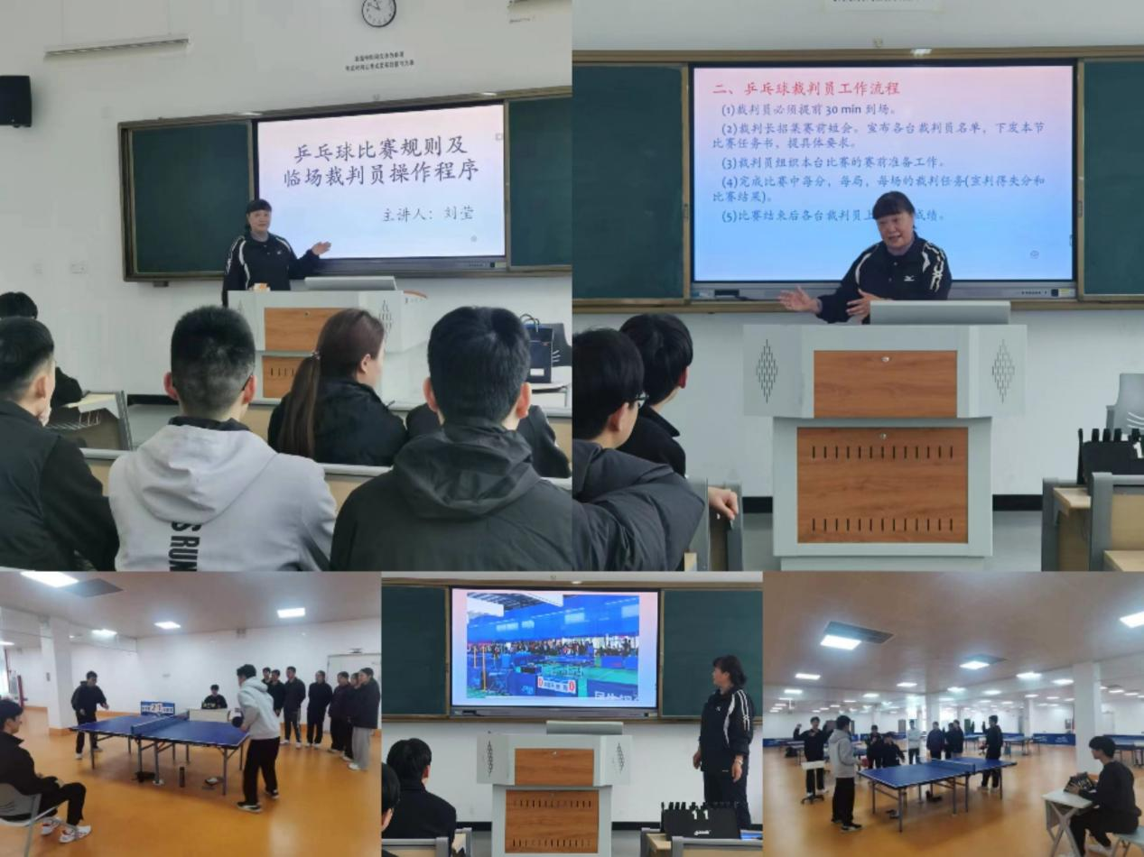 4月1日上午,beat365官网刘莹副教授面向学科教师2021级、2022级乒乓球专项的全体学生进行了《乒乓球规则及临场裁判员操作程序》为主题的专业讲座。