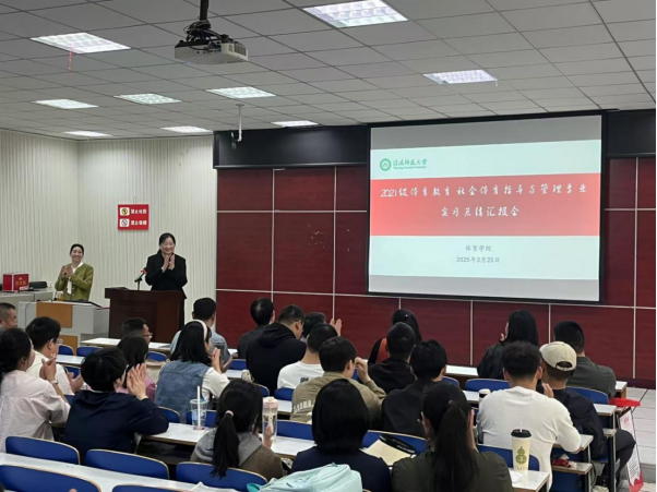 3月25日,beat365英国官网网站在体育馆多媒体教室召开2021级学生实习工作总结会议。体育学院党委书记张晓峰、院长余道明、党委副书记柴九昌、副院长张娟以及实习指导老师和实习生代表共同参加了此次会议。