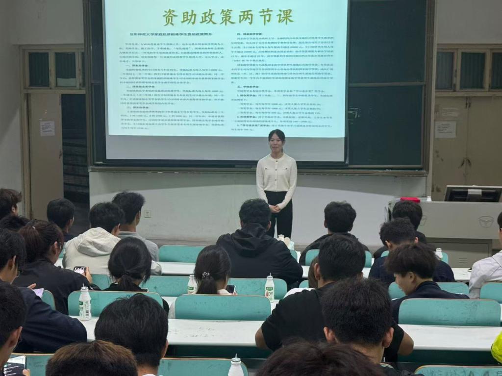 以资助之光,照亮成长之路”,为加大国家教育资助政策宣传力度,普及家庭经济困难学生资助知识,10月14日晚上,beat365英国官网网站2025级新生,在人文楼110召开资助政策“两节课”主题宣讲会,会议由资助专员唐娟主持。