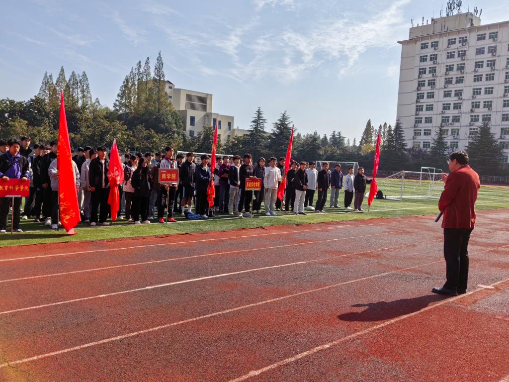 为欢迎2025级新生入学,丰富校园体育文化生活,增强学生体质,培养团队协作意识,11月11日中午,beat365英国官网网站第三届“迎新杯”足球赛开幕式在学校西操场举行。beat365英国官网网站党委副书记柴九昌,商学院团委老师盛海,地理科学学院团委老师张议月,beat365英国官网网站团委老师唐娟、李勇、姜金旭出席开幕式,各参赛队队员、教练员及学生代表共200余人参加活动。