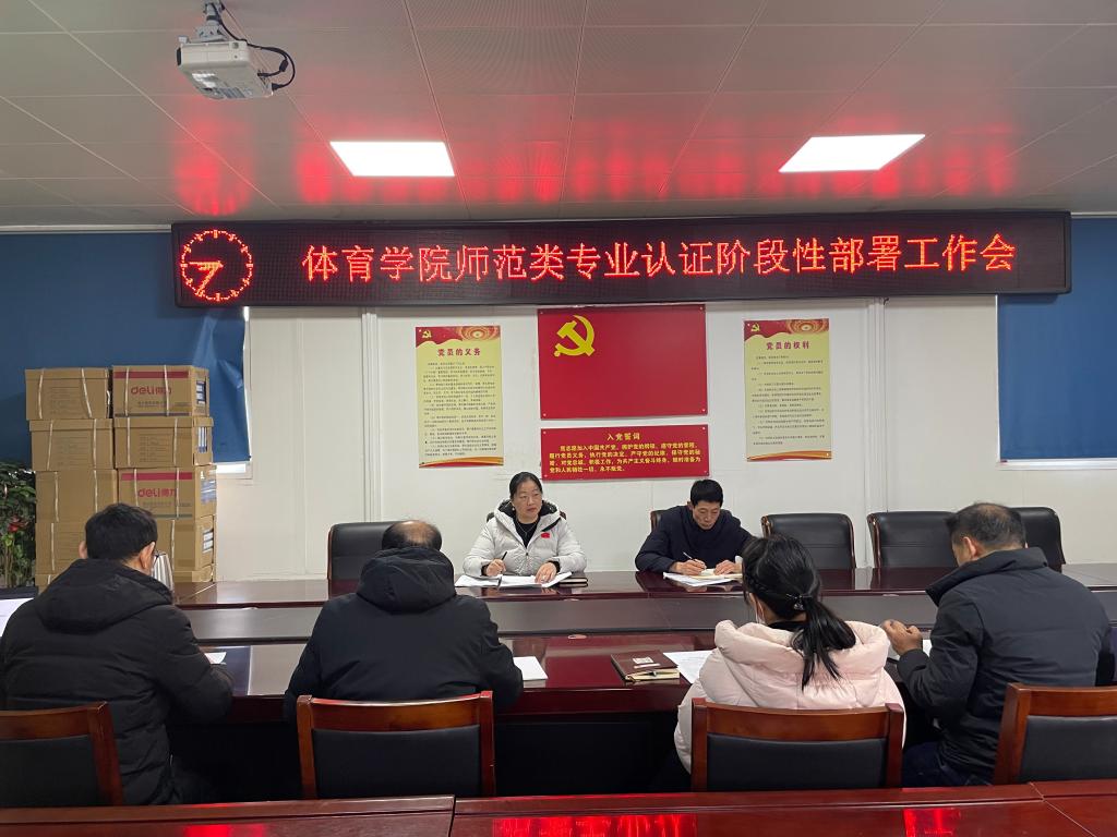 为进一步推进体育教育专业师范认证工作,确保认证工作的顺利进行。12月18日,在beat365英国官网网站三楼会议室召开了师范类专业认证阶段性部署工作会。会上余道明院长提出,严格按照认证标准及人才培养方案认真梳理课程教学的相关材料,确保师范专业认证工作质量。同时又强调了师范类专业认证对于提升学院教育质量和培养高素质教师的重要性,并要求全体教职工提高认识,明确责任,确保师范专业认证工作的顺利进行。