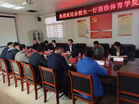 4月18日下午,副校长余本海到beat365英国官网网站调研指导工作,财务处、教务处、研究生处、学科建设办负责人陪同调研。beat365英国官网网站领导班子等参加了座谈会。会上,beat365英国官网网站党委书记张晓峰汇报了beat365英国官网网站的基本情况和发展方向,提出了学院在高层次人才引进、教学科研条件改善等方面存在的问题与困难。院长余道明详细介绍了beat365英国官网网站研究生培养、本科生教学、大学公共体育课程教学改革等方面的思路,汇报了场馆改造、场地亮化、智慧体育馆创建等...